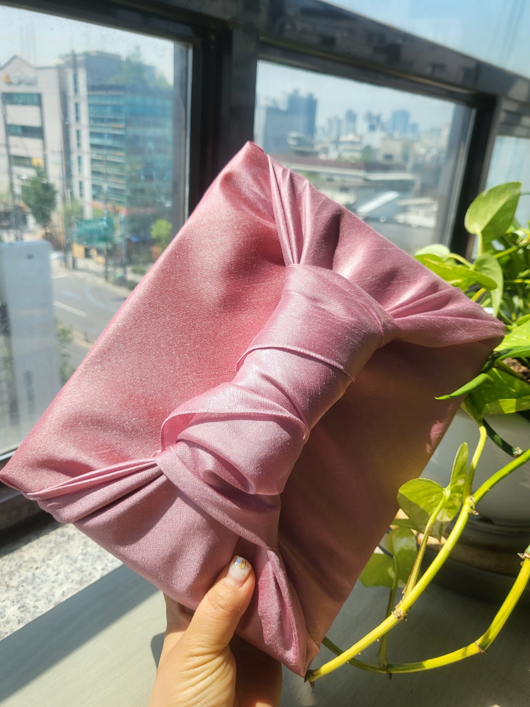 고객님 요청으로 설화수 분홍 보자기 포장 해 드렸어요